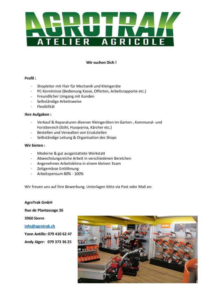 Herzlich willkommen bei AgroTrak. Wir sind Ihr zuverlässiger Partner, wenn es um Landmaschinen und/oder Motorgeräte aller Art geht. Ob Kauf, Vermietung, Reparatur oder Ersatzteile – wir finden für alles und jeden eine passende Lösung. Auf unserer Website finden Sie eine Übersicht unserer Angebote, wir wünschen viel Spass beim Stöbern.